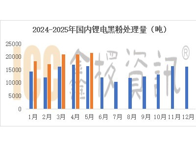 2025年5月國內(nèi)廢舊鋰電池黑粉統(tǒng)計處...